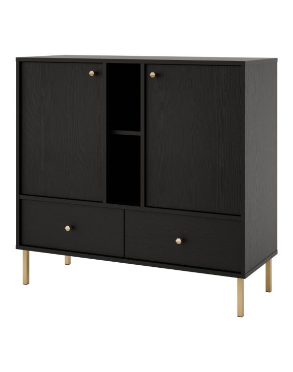 Komoda Tokyo 2 (2F2S) v čiernom prevedení spája funkčnosť s eleganciou a predstavuje ideálne riešenie pre interiéry v štýle japandi, škandinávskom aj modernom.