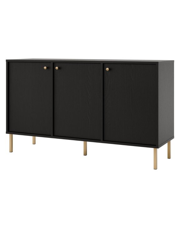 Čierne prevedenie v kombinácii so zlatými kovovými nožičkami a úchytkami vytvára elegantný a vyvážený celok, ktorý je praktický aj štýlový.