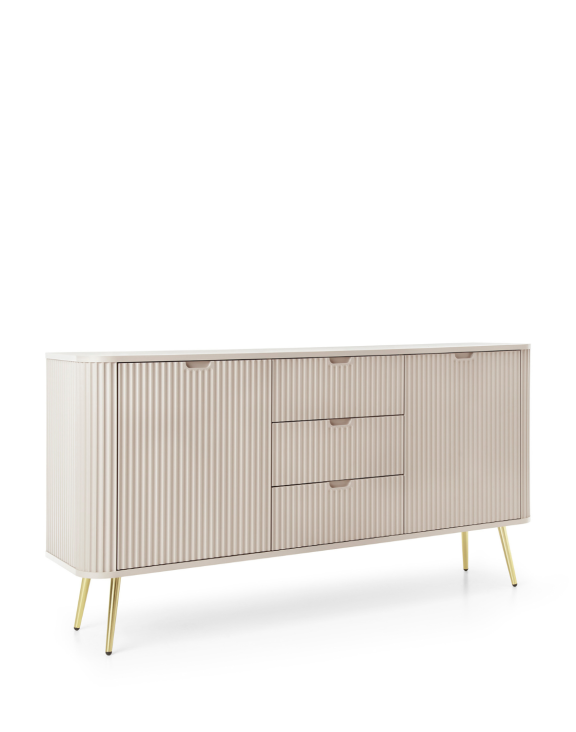 Komoda s tromi zásuvkami a dvierkami Zova (KSZ168) značky Piaski je štýlový a moderný kus nábytku v elegantnom dizajne v odtieni kašmír.