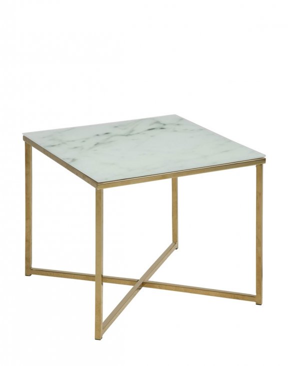 Alisma bielo / zlatý štvorcový stôl od výrobcu Actona je kombináciou moderného dizajnu, geometrického tvaru, elegancie a funkčnosti.