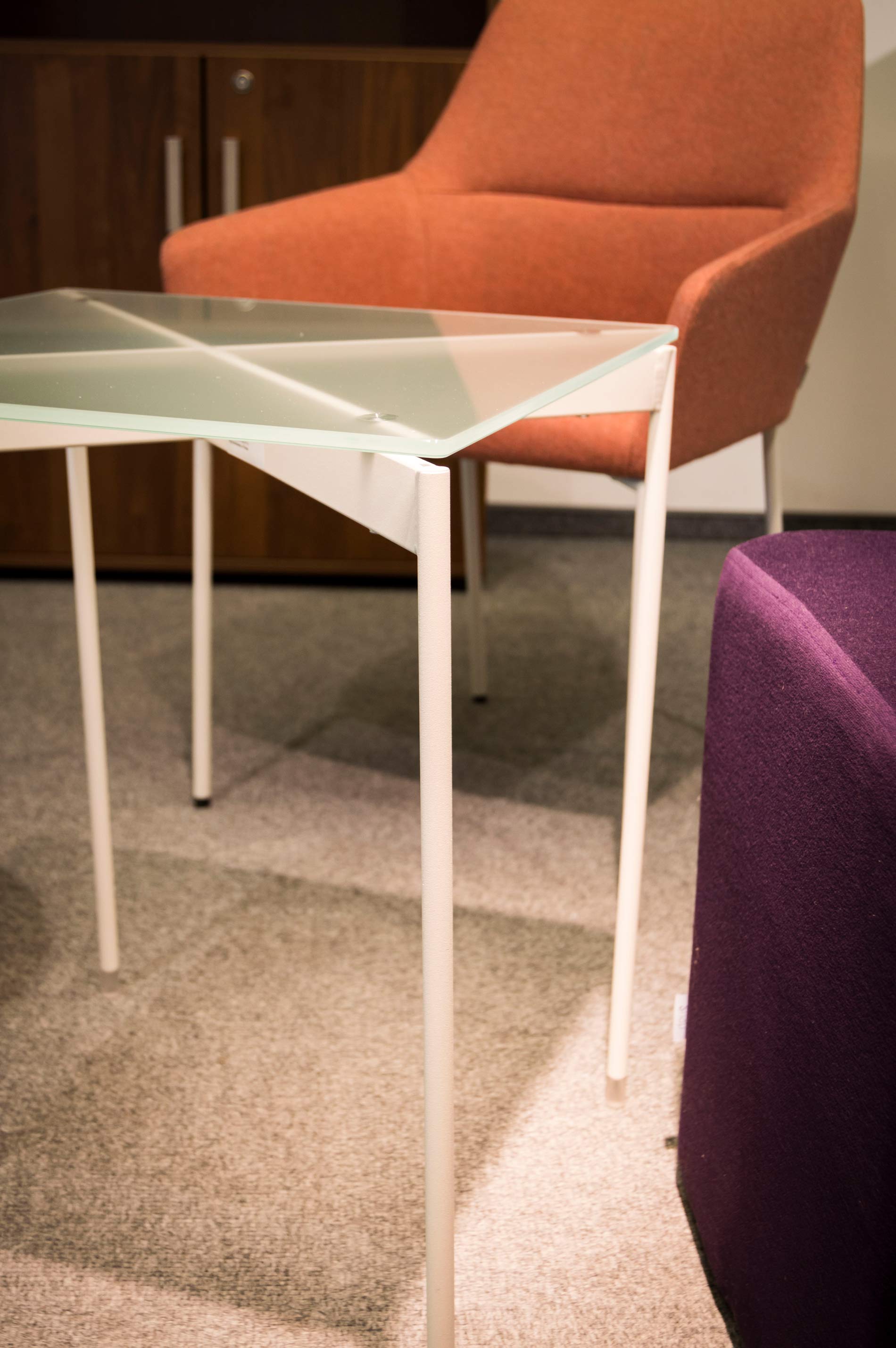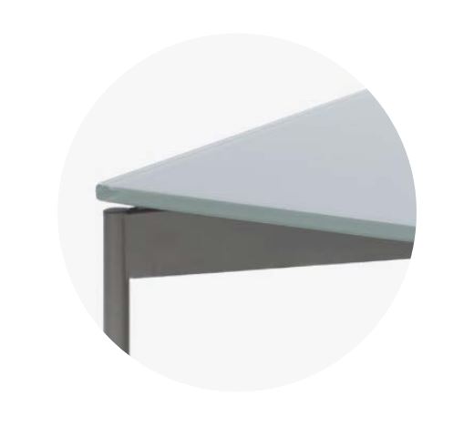Varianta s kovovou podnožou a doskou z tvrdeného skla pôsobí vzdušne a nadčasovo.