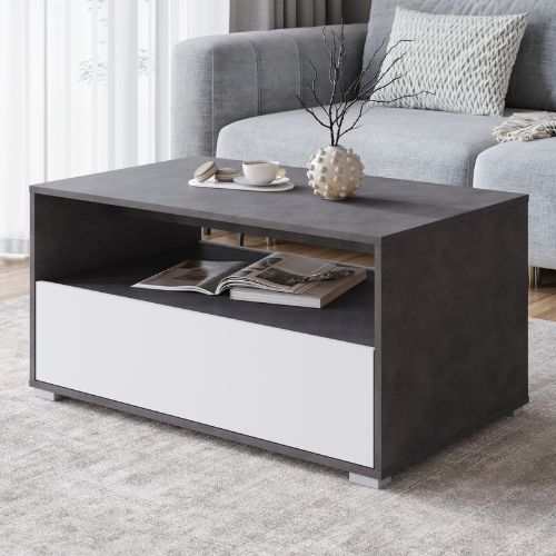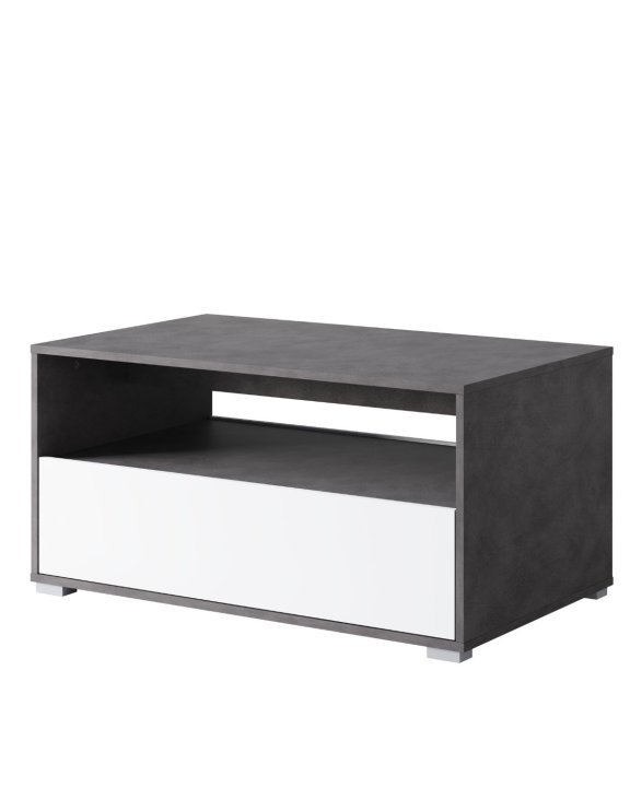 Konferenčný stolík má jednoduchý, geometrický tvar v elegantnom dekore matera, ktorý je doplnený bielymi čelami. Vzniká tak moderná a nadčasová kombinácia, ideálna do obývacích izieb zariadených v modernom, minimalistickom aj industriálnom štýle.