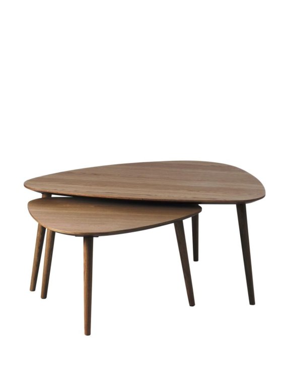 Dvojitý, trojuholníkový konferenčný stolík Adda značky Unique vo farbe tmavý dub je štýlová a funkčná sada dvoch stolíkov, ktoré sa skvele hodia do moderných aj škandinávskych interiérov.