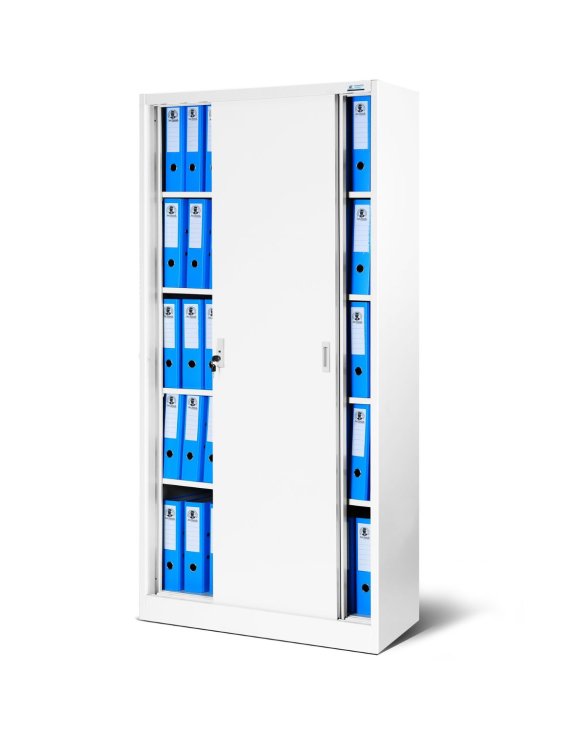 Kovová skriňa s posuvnými dverami KUBA v bielej farbe vyniká svojou funkčnosťou, trvanlivosťou a vzhľadom.