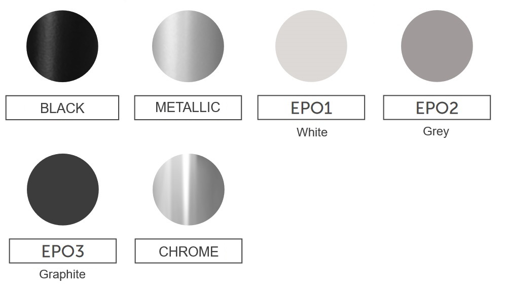 Podnož je dostupná v 6 farebných variantoch: čierna, metalická, biela (EPO1), sivá (EPO2), grafitová (EPO3) a chróm – všetky varianty sú uvedené v cenníku.