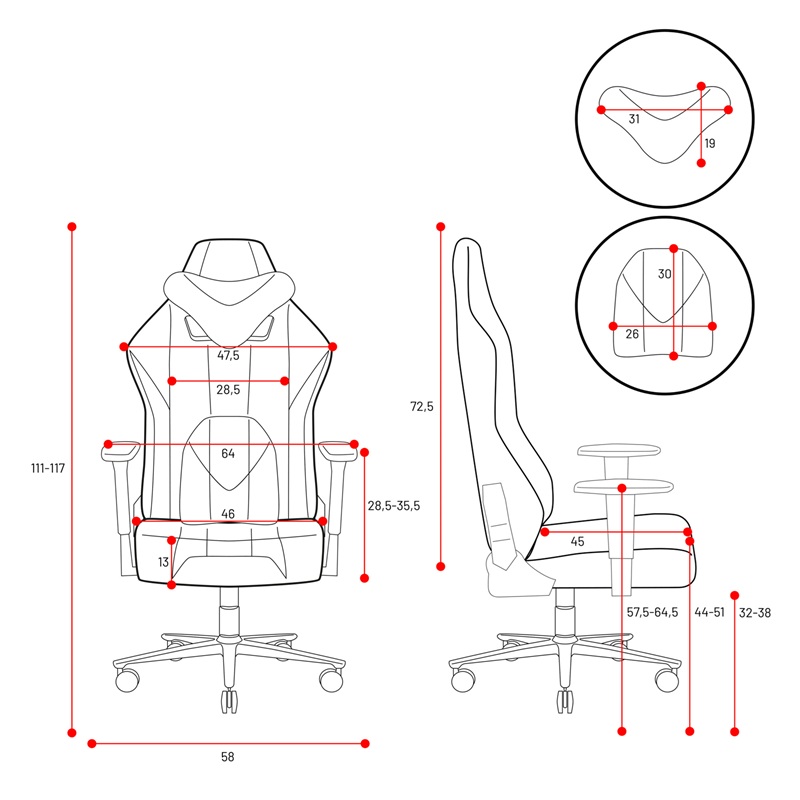 Herné kreslo Diablo X-Player je vybavené profilovanou opierkou hlavy, ktorá podopiera krčnú chrbticu, čím odstraňuje nepríjemné bolesti krku či hlavy.