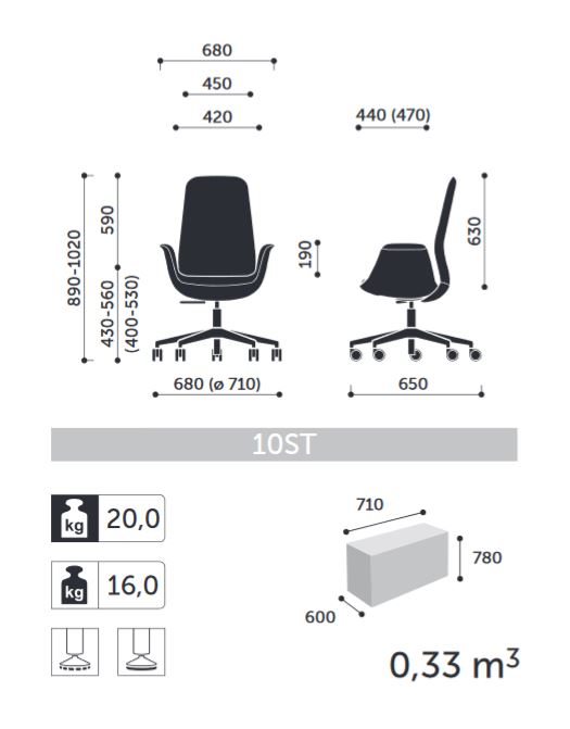 Model je vybavený vysokým čalúneným operadlom a mechanizmom Synchro Self, ktorý je elegantne integrovaný priamo do sedadla.