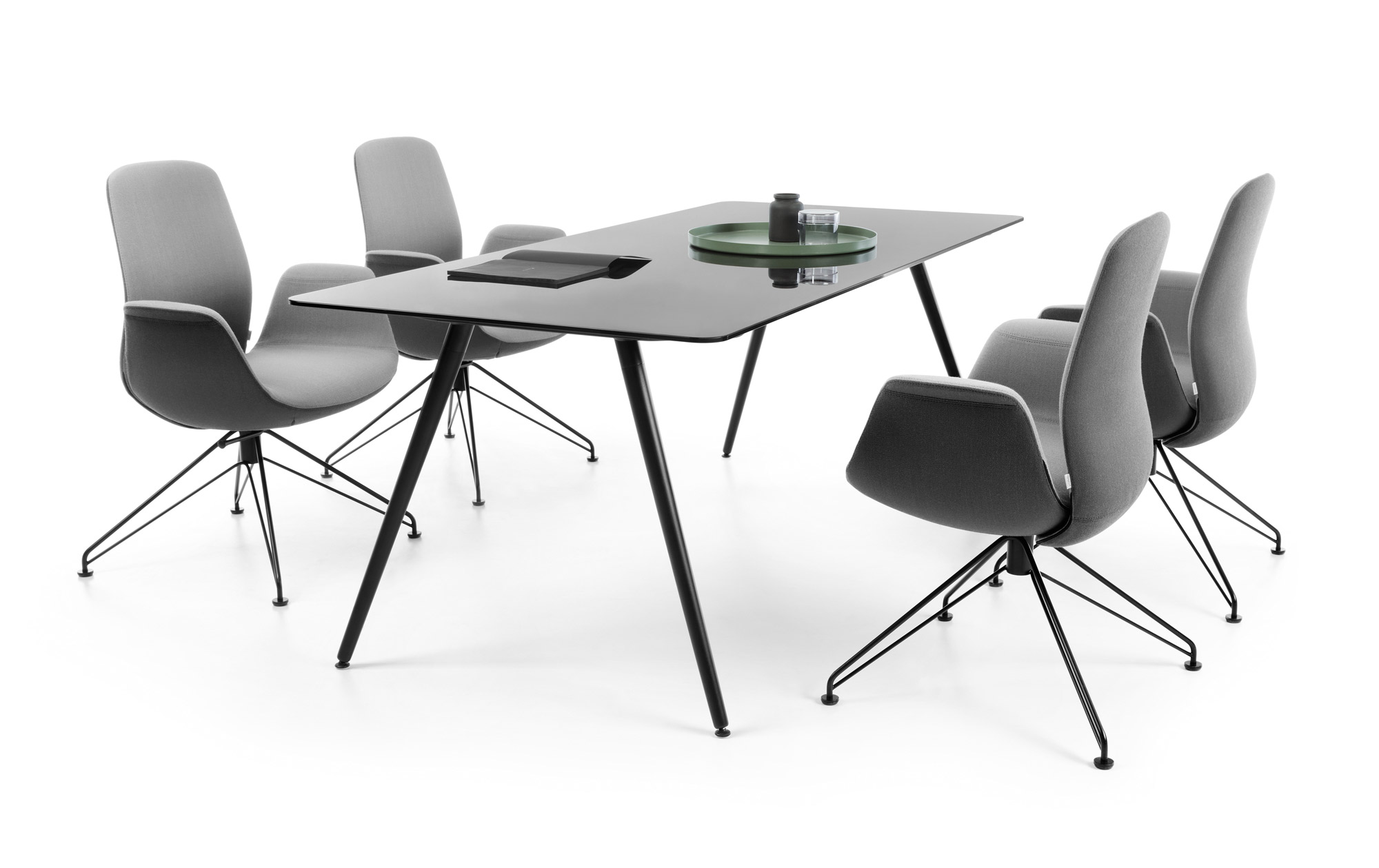 Prezentovaný model je otočný, vybavený nízkym čalúneným operadlom a mechanizmom Synchro Self, ktorý je nenápadne integrovaný priamo do sedadla.