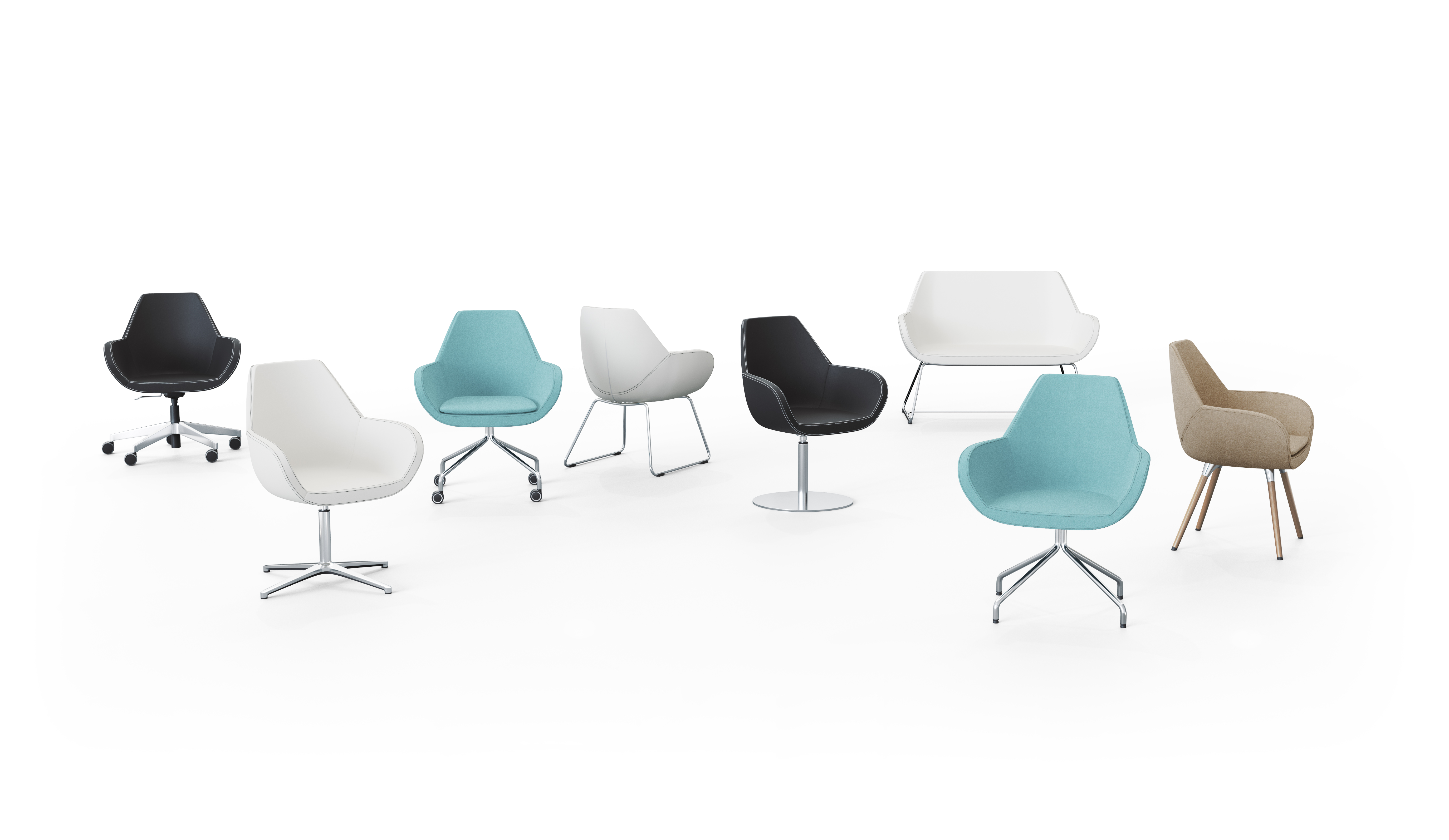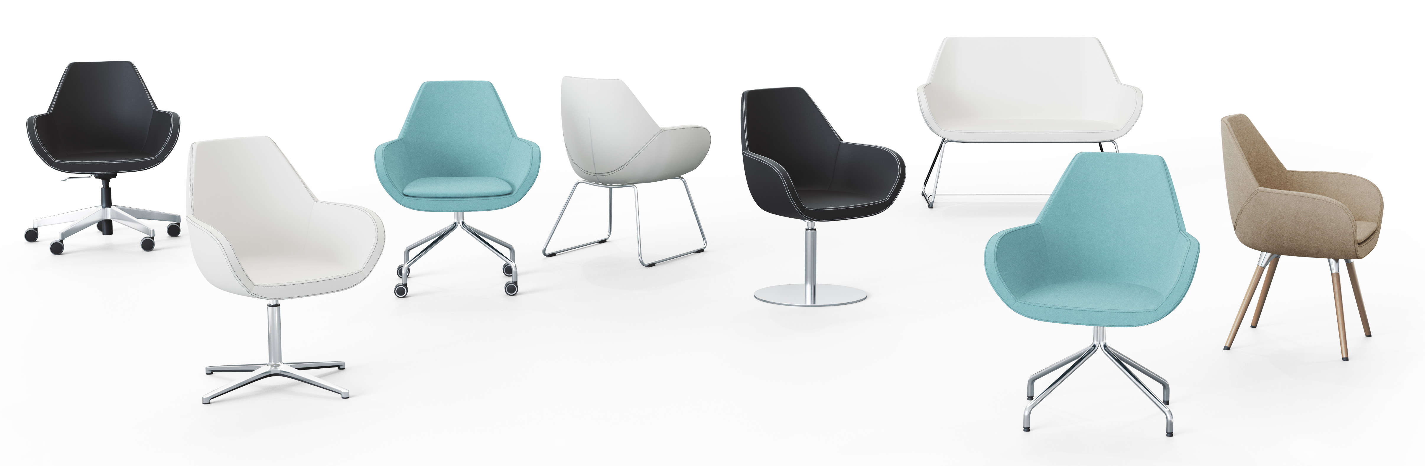 V ponuke nájdete aj ďalšie verzie modelu Fan: konferenčnú stoličku na nožičkách, konferenčnú stoličku na lyžinách a dvojmiestnu pohovku – všetky nájdete v sekcii PODOBNÉ produkty zo série.