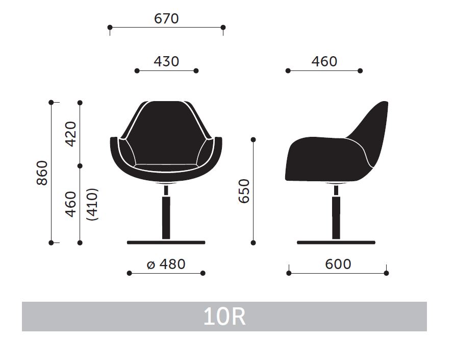 Prezentovanú verziu 10R odlišuje okrúhla podstava s centrálnou nohou, ktorá je dostupná v dvoch farbách: chrome (lesklá) a metalik (svetlosivá).