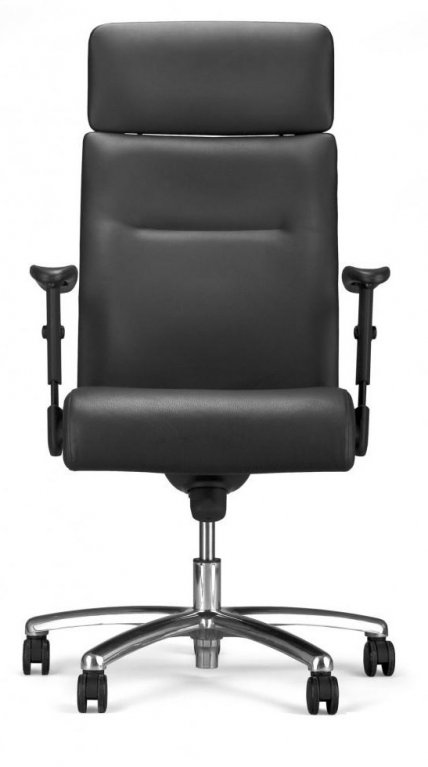 Kreslo Neo Lux R s priestranným sedadlom a tvarovaným operadlom a samostatnou čalúnenou opierkou hlavy.