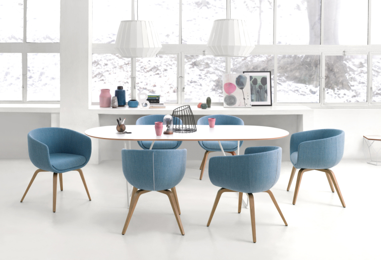 Kreslo NU 20HW značky Profim predstavuje ľahké, čalúnené kreslo s drevenými nohami.