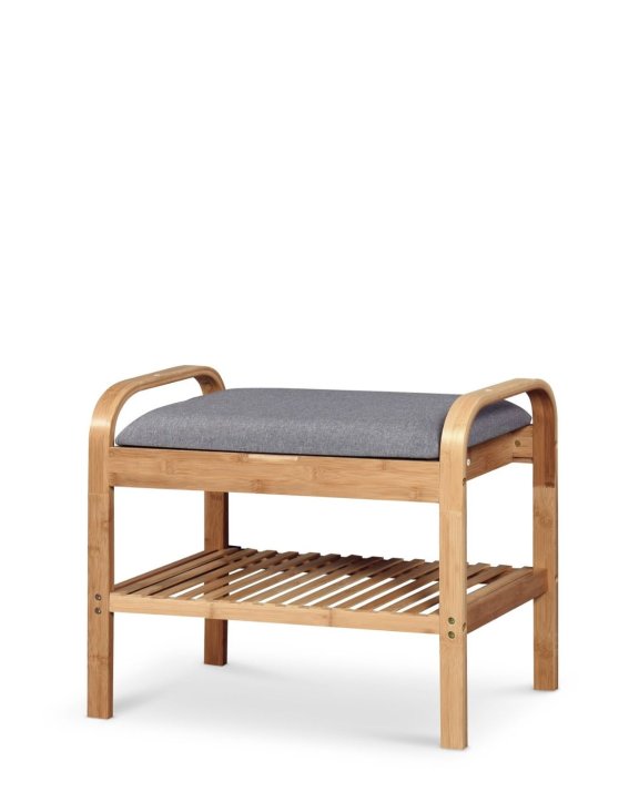 Odolný sedák umožňuje pohodlné obúvanie aj vyzúvanie, zatiaľ čo otvorená polica pod sedákom slúži ako praktická priehradka na topánky alebo drobné doplnky.