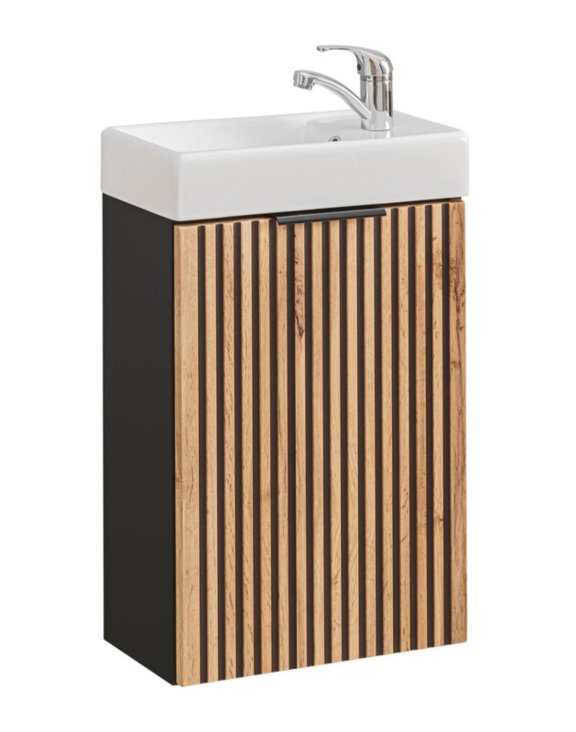 Malá kúpeľňová skrinka so zabudovaným umývadlom 40 cm je ideálna do kúpeľní, kde záleží na každom centimetri priestoru.