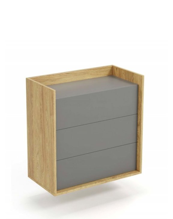 Výrobok je vyrobený z dyhovanej nábytkovej dosky s hrúbkou 18 mm a má inovatívny systém otvárania a to stlačením.