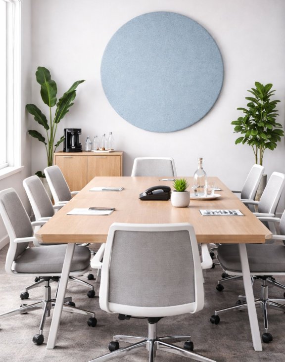Kruhový formát 100 × 100 cm, široká paleta poťahových látok a precízne spracovanie zabezpečujú vysokú účinnosť pohlcovania zvuku v kombinácii s elegantným vzhľadom.