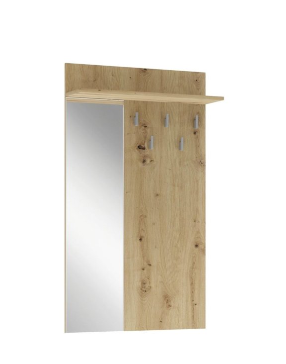 Vyrobený z odolnej laminovanej nábytkovej dosky a doplnený o zrkadlo – vešiak uľahčuje organizáciu každodenných doplnkov a zároveň opticky zväčšuje vstupný priestor.