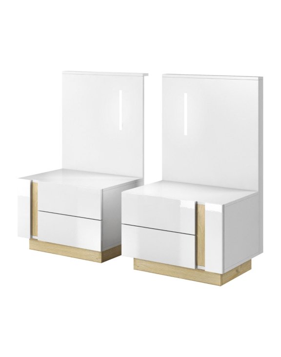Nočné stolíky Arco O s LED osvetlením, biely lesk / dub grandson