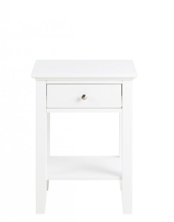 Skrinka je vyrobená z bielej MDF dosky s jednou zásuvkou a policou, na ktorú si môžete položiť svoju obľúbenú knihu.