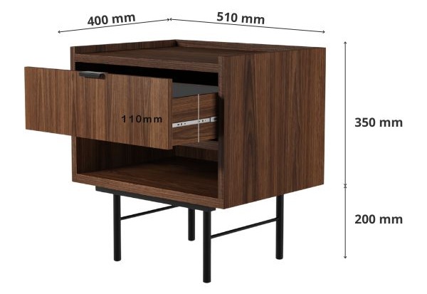 Praktické rozmery – vďaka kompaktnému prevedeniu sa stolík jednoducho zmestí aj do menších spální, pričom ponúka vysokú funkčnosť.