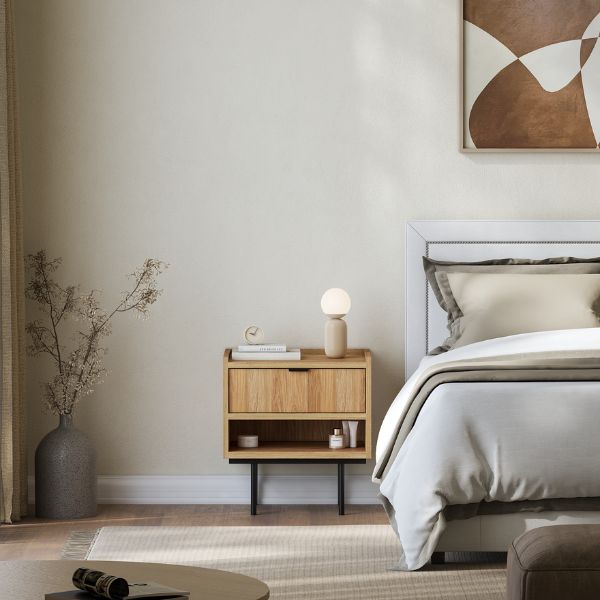 Nočný stolík Edison Hikora je elegantný a funkčný doplnok, ktorý dokonale doplní zariadenie vašej spálne.