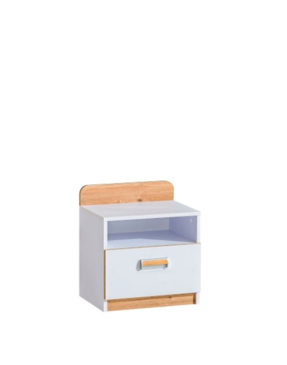 Nočný stolík Lorento L12 sa skvele hodí do študentskej, detskej izby alebo spálne. Jeho funkčná konštrukcia spája praktickosť úložného priestoru s atraktívnym dizajnom. Kombinácia bielej farby s dekorom dreva dodáva nábytku ľahkosť a zároveň útulnosť, vďaka čomu ho možno jednoducho zladiť s rôznymi štýlmi interiéru – od moderných po klasické.