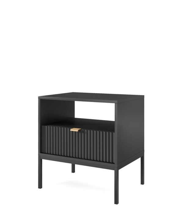 Nočný stolík Nova čierny/čierny (S54) značky Piaski je elegantný a funkčný kus nábytku, ktorý sa skvele hodí do spálne.