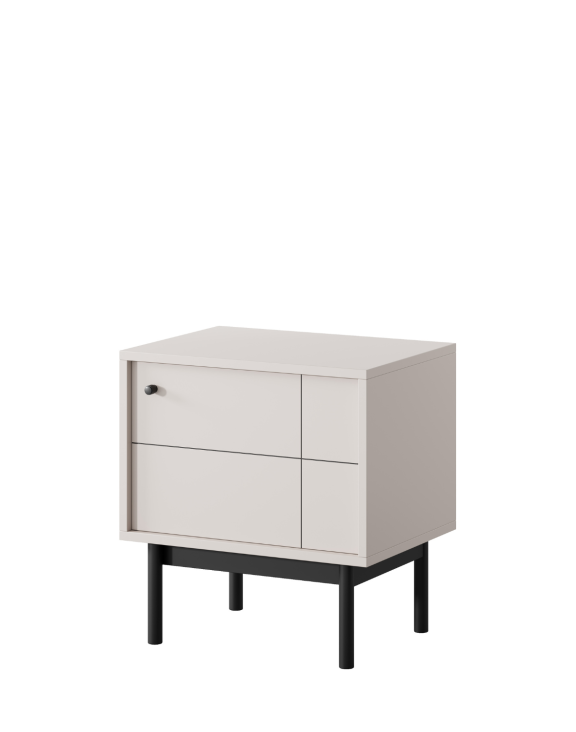Nočný stolík Japandi S54 značky Piaski v odtieni kašmír je elegantný a praktický kus nábytku ideálny do spálne, inšpirovaný štýlom Japandi.