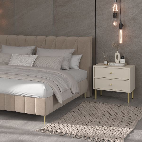 Nočný stolík Tokyo 2 v elegantnej pieskovo béžovej farbe vnesie do vašej spálne atmosféru pokoja a rovnováhy.