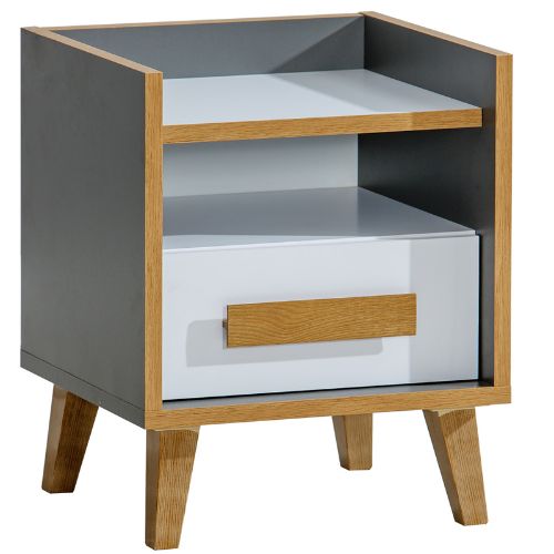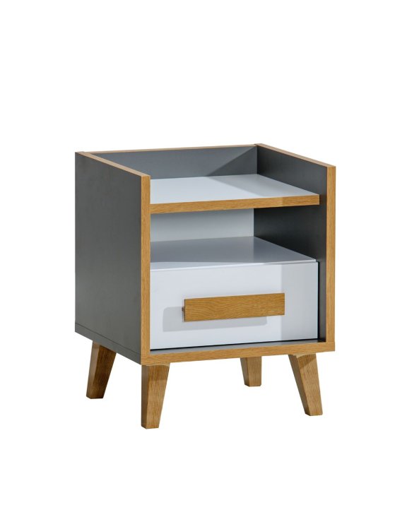 Nočný stolík, navrhnutý pre moderné interiéry, sa skvele hodí ako do spálne dospelých, tak aj do detskej alebo študentskej izby.
