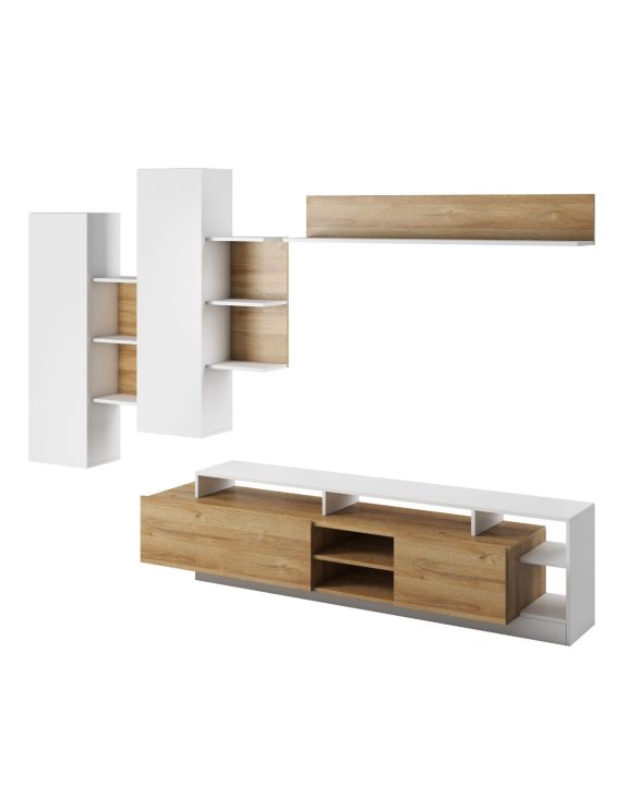 Obývacia stena Alva – biela s dekorom dub grandson, moderná TV zostava 260 cm