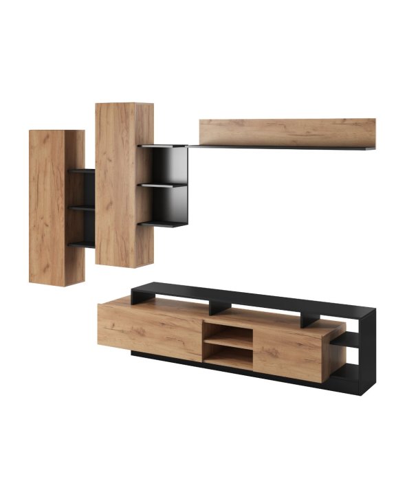Obývacia stena Alva dub craft zlatý + antracit – moderná TV zostava s policami