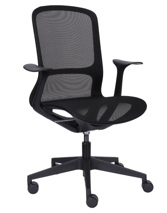 Sedadlo a vysoké operadlo sú vyrobené z odolnej a pružnej sieťoviny v univerzálnej čiernej farbe.