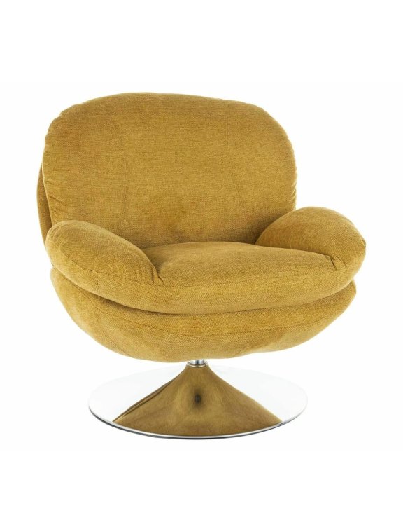 Čalúnené veľmi módnou a na dotyk príjemnou tkaninou vo farbe žlté curry, usadené na pevnej chrómovanej základni v tvare kalicha, ponúka nielen výnimočné pohodlie, ale aj stabilitu a odolnosť.