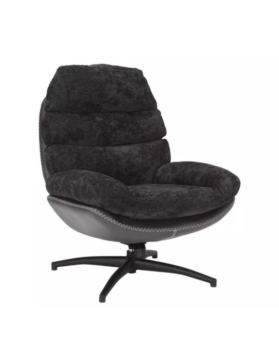 Vďaka čalúneniu z mäkkej tkaniny v čiernej farbe a elegantnej zadnej časti zo syntetickej kože pôsobí kreslo moderne a zároveň útulne.