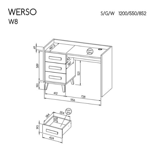 Písací stôl Werso W8 s tromi priestrannými zásuvkami vnesie do interiéru dizajnový akcent.