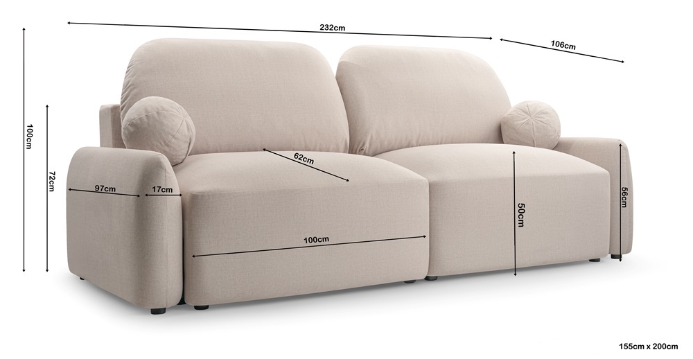 Integrovaná funkcia spania s pohodlným rozkladacím systémom typu DL ponúka komfortné spanie každú noc – plocha na spanie má rozmery 155 × 200 cm.