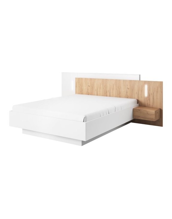 Drevená posteľ s úložným priestorom, nočnými stolíkmi a osvetlením 160×200 – kolekcia 3D