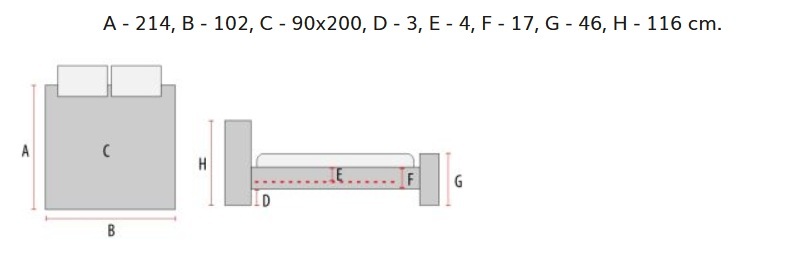 Rozmer matraca: 90×200 cm, prístelka: max. 90×195×18 cm.