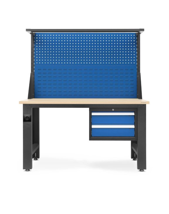 Dielenský - pracovný stôl je vybavený zásuvkami zamykateľnými na kľúč, nástennými panelmi na náradie, držiakom na lampu a zásuvkou.