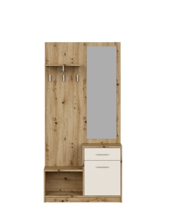 Prevedenie v dekore dub artisan/Kašmír dodáva vstupnému priestoru prirodzený charakter a teplo. Vďaka univerzálnemu farebnému ladeniu nábytok jednoducho zladíte s rôznymi štýlmi interiéru – od moderného cez minimalistický až po klasický.