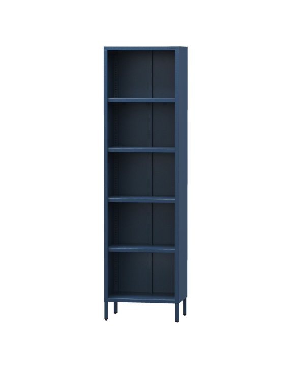 Elegantný minimalizmus: Regál MARIO v tmavomodrej farbe obsahuje milióny trblietok, ktoré vytvárajú veľkolepú podívanú pri dopade svetla. Jeho štíhla kovová konštrukcia je lakovaná povrchovou úpravou Sparkling Brilliance™, ktorá dodáva nábytku šperkový vzhľad.