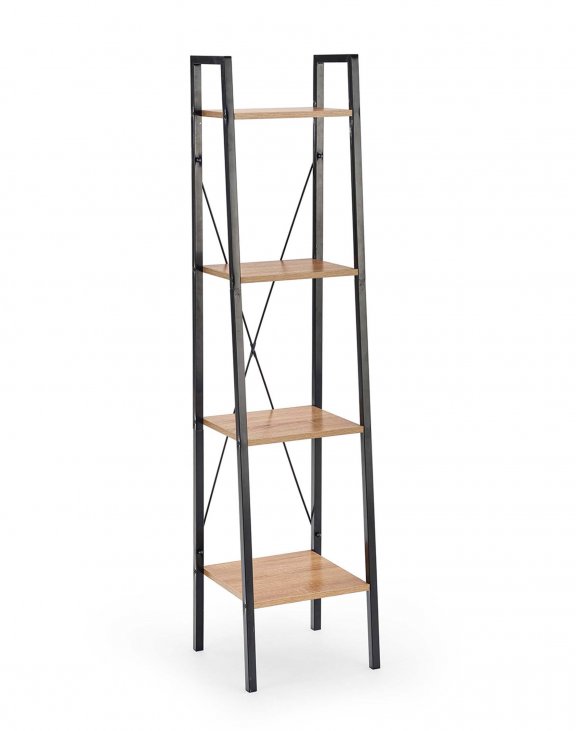 Štyri police sú vyrobené z laminovanej nábytkovej dosky vo farbe dub.