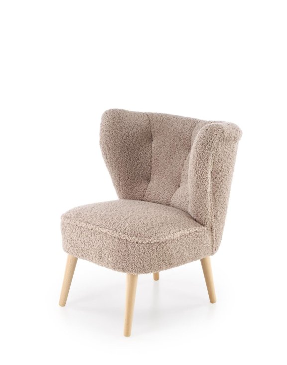 Stabilitu kresla zabezpečujú drevené nohy v prírodnom odtieni, ktoré dodávajú celku ľahkosť a krásne ladia s teplou farbou čalúnenia.