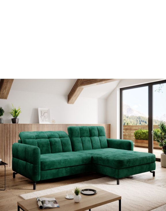 Rohová rozkladacia sedacia súprava Lorelle značky Eltap s modernými nastaviteľnými opierkami hlavy ponúka maximálne pohodlie a komfort pri používaní.