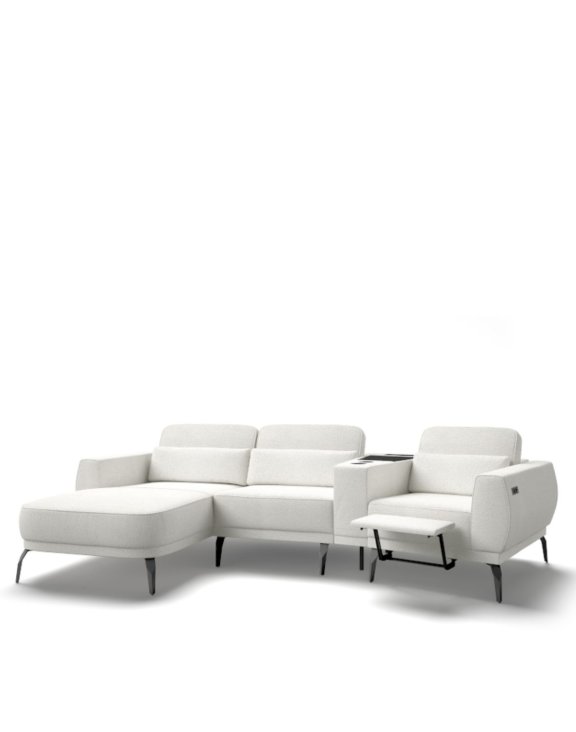Vďaka štíhlym čiernym nohám pôsobí rohová sedacia súprava mimoriadne ľahko. Komfortné, ergonomicky tvarované operadlá boli navrhnuté tak, aby poskytovali maximálnu oporu pre chrbát, zatiaľ čo široké sedadlá zaručujú pohodlie pri každodennom oddychu.