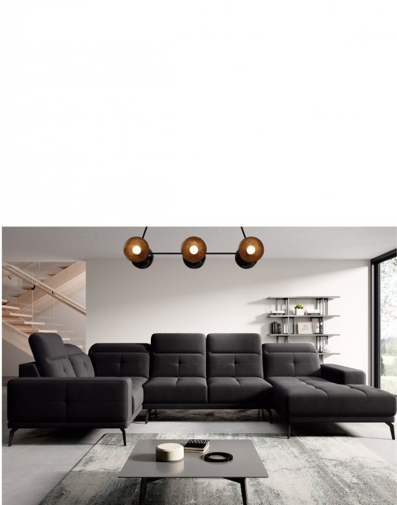 Rohová sedačka Neviro s moderným, posuvným operadlom a nastaviteľnými opierkami hlavy poskytuje maximálne pohodlie a komfort pri používaní.