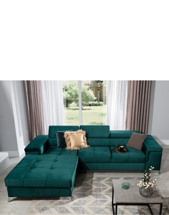 Sedačka má tvar písmena L. Bočný sedák (leňoška) môže byť umiestnený vpravo alebo vľavo. Voľbu tejto časti vykonáte v košíku.