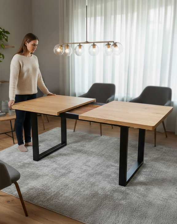 Stôl Grand M Plus vyniká aj svojou praktickosťou – vďaka rozkladaciemu mechanizmu je možné jeho dĺžku zväčšiť zo 160 cm až na 200 cm, čo oceníte pri rodinných stretnutiach aj väčších oslavách.