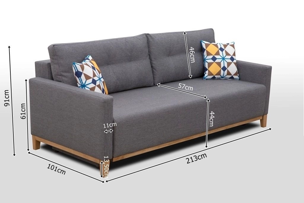 Šírka pohovky je 213 cm a plocha na spanie po rozložení činí 191x140 cm, čo poskytuje pohodlné miesto na odpočinok pre dve osoby.